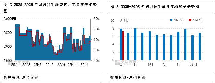 据卓创资讯数据统计,截至1月31日,1月份国内异丁烯装置平均开工负荷率在56.27%,环比12月份提升1.23个百分点。其中1月中上旬开工负荷率维持在55.80%,下旬开始盈科化学装置恢复,开工负荷率提升至58.23%,主要是期间需求回暖对于开工负荷存在提振。