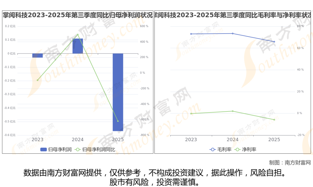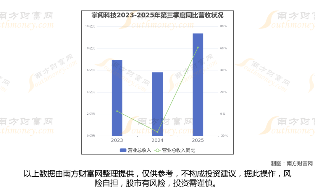 2025年第三季度季报显示,掌阅科技公司毛利率65.86%,净利率-5.79%,归属净利润-5651.72万,同比增长-619.61%。