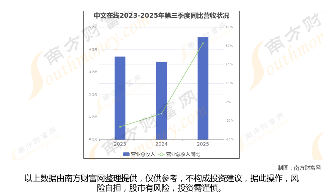 在2025年第三季度,中文在线的业绩表现(如上图),主营业务收入达到4.55亿元,实现了31.43%的同比增长率。