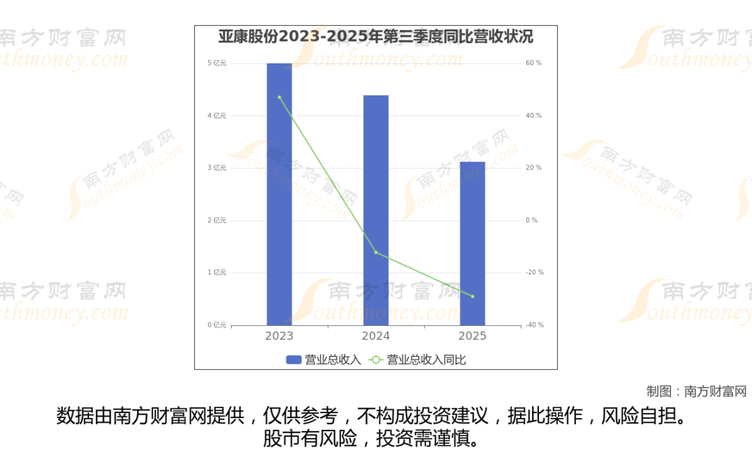 (如上图)亚康股份披露2025年第三季度报告,报告期实现营收3.12亿元,同比-28.99%。