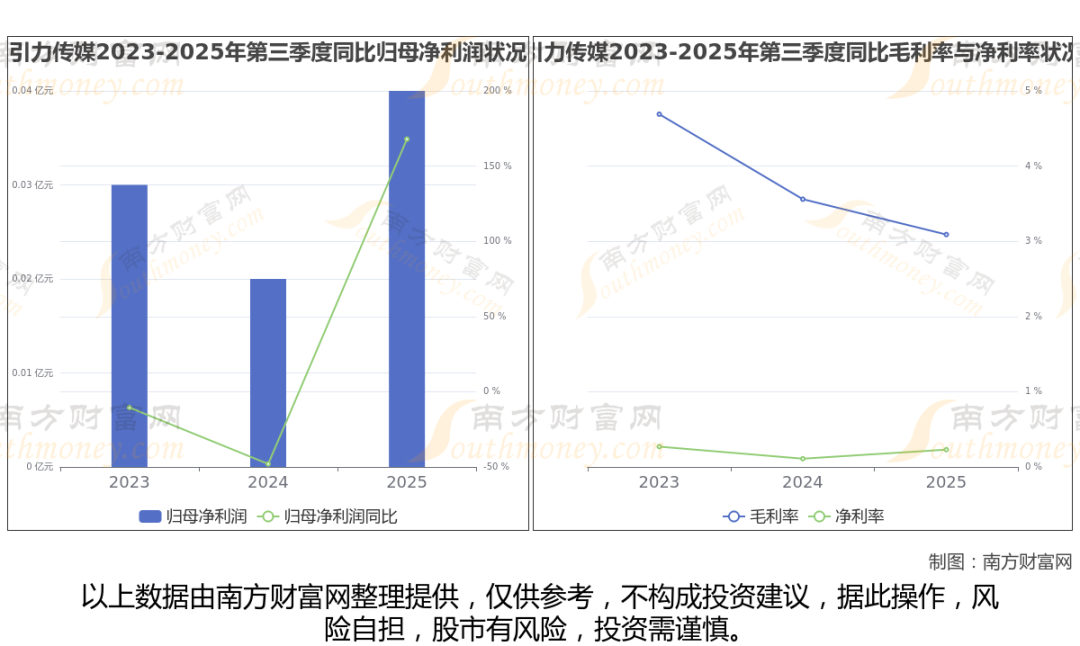 2025年第三季度季报显示,引力传媒公司实现净利润442.85万,同比增长167.91%;毛利润为5921.58万,毛利率3.09%。