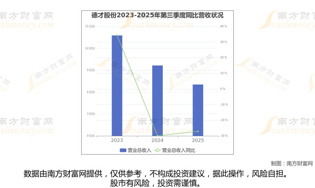 (如上图)德才股份披露2025年第三季度报告,报告期实现营收7.04亿元,同比-27.05%。