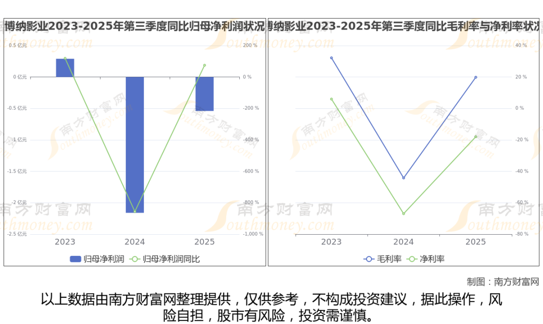 2025年第三季度季报显示,博纳影业公司实现净利润-5394.39万,同比增长75%;毛利润为5942.3万,毛利率19.85%。