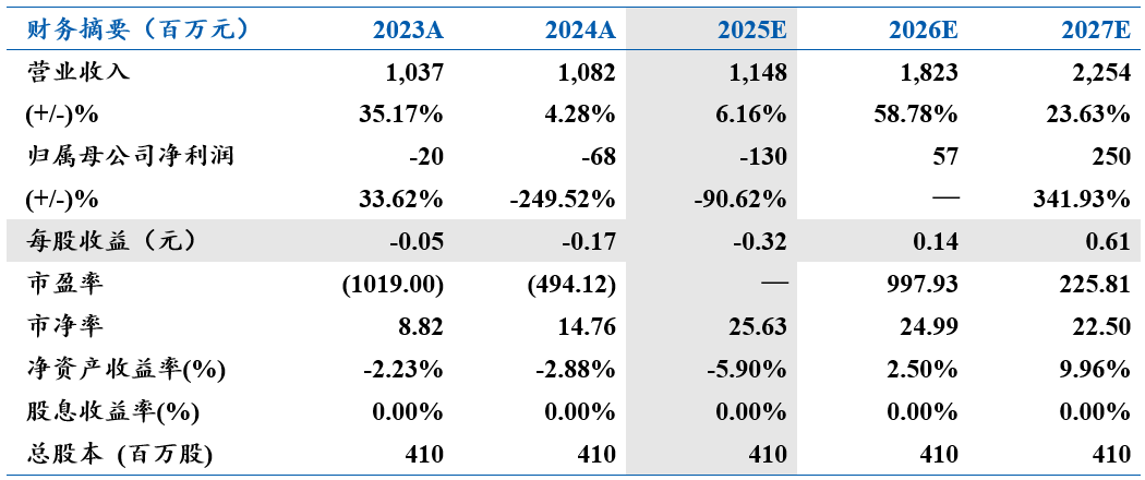 2025年营收稳健增长,战略性研发投入致短期利润承压。公司预计2025年全年实现营收11.36亿元至11.80亿元,同比增长5.01%至9.07%,在复杂外部环境下保持收入韧性;预计归母净利润亏损1.20亿元至1.60亿元,亏损同比扩大。业绩波动主要系公司坚持长期主义,大幅增加研发投入以深化工艺平台布局并加速产品迭代。