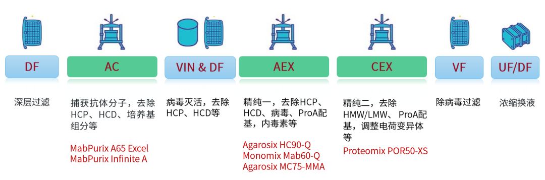 图1. 抗体类似药纯化工艺流程及推荐填料