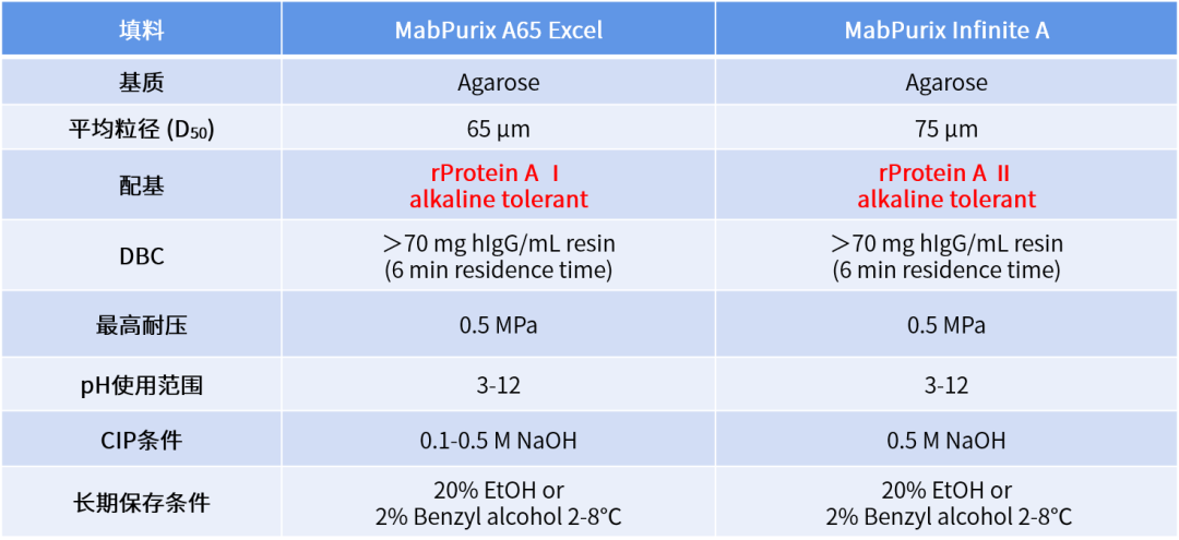 赛分科技MabPurix A65 Excel与MabPurix Infinite A两款填料均以高交联度琼脂糖微球为基质,具有天然的高度亲水性,其表面经过独特的化学修饰后与耐碱性重组Protein A配基键合,高载量、高耐碱性、寿命长的优势在实际生产应用中可有效降低生产成本。MabPurix A65 Excel性能稳定,载量表现与蛋白A配基、HCP等杂质控制能力突出,已成功应用于多个临床及商业化生产的抗体类项目。MabPurix Infinite A填料键合新一代高耐碱性Protein A配基,在线清洗(CIP)可耐受0.5~1.0 M NaOH,CIP条件为0.5 M NaOH的寿命实验验证可使用150 cycles以上,尤其适用于碱性条件要求高的复杂抗体类项目。