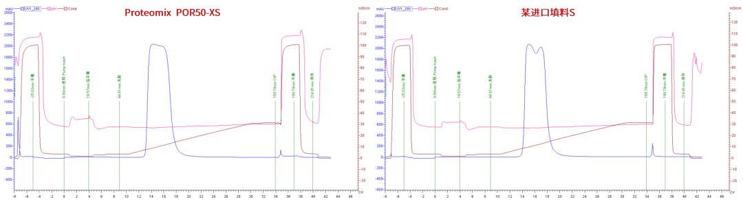 图7. Proteomix POR50-XS与某进口填料纯化图谱