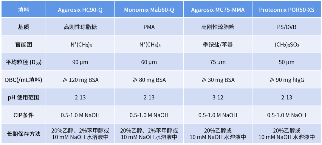 阴离子交换填料推荐琼脂糖基质Agarosix HC90-Q和聚合物基质Monomix Mab60-Q,Agarosix HC90-Q填料表面的高度亲水性使得样品与固定相间的非特异性吸附降至最低,兼具高载量、高纯度、高收率,可为生物分子提供出色的分离纯化效果。