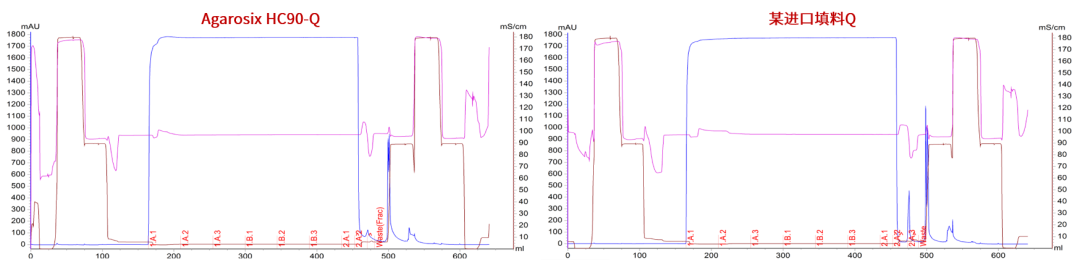图4. Agarosix HC90-Q与某进口填料纯化图谱