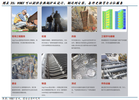 Vogt Power International是全球领先的余热锅炉(热回收蒸汽发生器HRSG)设计和制造商。由亨利·沃格特于1880年创立,1902年进入锅炉业务,1962年生产出第一台HRSG,目前产品已经出口到40多个国家,累计发货量超600多台。产品功率范围覆盖25MW-550MW或更高范围内的燃气轮机。除了余热锅炉整机制造,VOGT还提供现场安装、改造,以及风箱、分流器、管道、阀门等零部件更换和备件等服务。