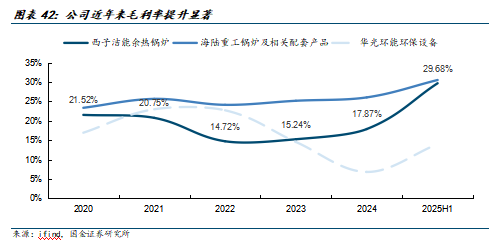 毛利率方面,公司从2024年开始加大余热锅炉海外市场的开拓力度,不断优化余热锅炉业务订单质量,余热锅炉毛利率实现了逐步提升,1H25已提升到29.68%。