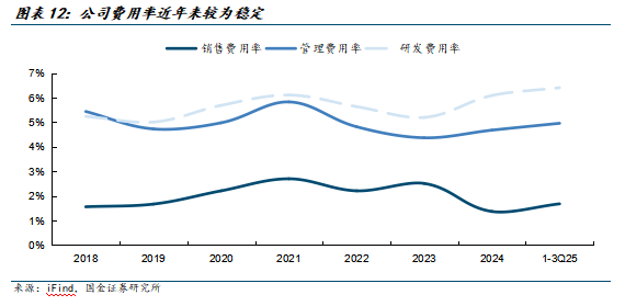 期间费用率维持稳定,营运资金管理强化,现金流与利润同步改善。期间费用率方面,公司销售、管理和研发费用率近年来相对稳定。2025年,公司加强在手订单预收款项催收及转销项目应收款管理,1-3Q25实现经营性现金流净额3.48亿元,同比 130%。根据公司25年业绩预告,2025年公司加强应收账款及存货管理,营运资金占用总额有所下降,2025年经营活动现金净流入明显提升,计提的预期信用损失及资产减值损失较上年同期减少,1-3Q25公司资产减值损失和信用减值损失为-0.30/-0.11亿元,较1-3Q24的-0.35/-0.90亿元显著下滑,带动25年公司扣非后归母净利润大幅增加。