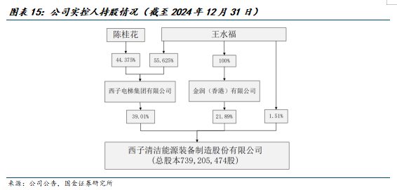 公司控股股东为西子电梯集团和金润(香港),实控人为前任董事长王水福先生。截至2024年底,公司第一大股东西子电梯集团持股39.01%,第二大股东金润(香港)持股21.89%,实控人王水福先生通过西子电梯集团持有公司39.01%的股份,通过金润(香港)有限公司持有公司 21.89%的股份,直接持有公司 1.51%股份,直接或间接持股62.41%。根据2025年9月24日公告,由于可转债转股,控股股东西子电梯集团、实控人王水福先生及其一致行动人金润(香港)合计持股比例被动稀释至55.18%。本次变动不改变控股股东和实控人地位,股权结构保持稳定。