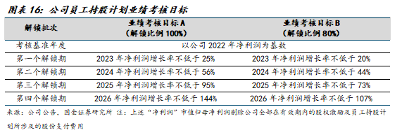 公司实施员工持股计划,充分调动员工工作积极性。2023年4月29日,公司发布2023年员工持股计划(草案)公告,本次员工持股计划的授予对象包括公司部分董事、监事、高级管理人员8人,公司中层干部及优秀骨干员工不超过192人,合计不超过200人。本员工持股计划的股票购买价格为8.55元/股,即公告前120个交易日公司股票交易均价的50%。业绩考核目标分别A、B两档,业绩考核期为2023-2026年,以2022年为基期,按照A档考核要求,2023-2026年的净利润增长率分别不低于25%/56%/95%/144%,即2023-2026年净利润分别不低于2.55/3.18/3.98/4.98亿元。本次员工持股计划有助于公司完善长效激励机制,充分调动核心员工的积极性。