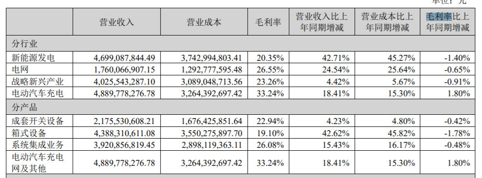 特锐德2024年年报显示,其成套开关设备、箱式设备、系统集成业务等智能制造 集成服务的毛利率,都出现了同比下滑。
