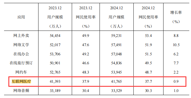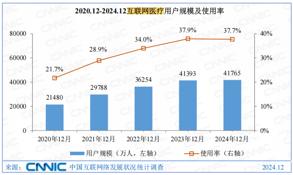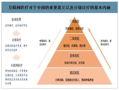互联网医疗是以互联网为载体、以信息技术为手段(包括移动通讯技术、云计算、物联网、大数据等)与传统医疗健康服务深度融合而形成的一种新型医疗健康服务业态的总称。它代表医疗行业新的发展方向,同时也有利于解决中国医疗资源不平衡和人们日益增加的健康医疗需求之间的矛盾。互联网医疗分为三个阶段,我国目前处于以互联网医院为代表的2.0阶段,并同时向以医疗、医药、医保“三医联动”为代表的3.0时代迈进。中国互联网医疗上游包括医疗大数据、医疗智能硬件、医药制造及医疗器械;下游通过互联网医院、综合医院、专科医院、基层医疗机构、健康体检机构、康复机构等途径到达终端患者及患者家属。第一,互联网医疗允许消费者借助网络享受挂号预约、诊疗咨询、线上支付、查看化验单、送药到家等服务,是一项便民措施;第二,借助互联网媒介,可获取居民健康状况、生活环境、人际交往等更多维度信息,并借此做出更准确的诊断;第三,汇集更多信息,有助于更及时、准确的开展公共卫生防疫活动;第四,借助互联网可获取更多的医疗健康资讯,亦可以促进患者、医生等之间经验交流;第五,借助互联网,医卫监管机构也可以获取更多、更准确、更及时的信息,透明度提升有助于提高监管水平。除了上述优点外,对于中国而言,互联网医疗更大的意义在于有助于分级诊疗落实,提升医疗体系的运行效率。分级诊疗即是指按照疾病的轻重缓急及治疗的难易程度进行分级,不同级别的医疗机构承担不同疾病的治疗,逐步实现从全科到专业化的医疗过程。更为具体的,分级诊疗机制要求根据疾病类型及轻重缓急在不同级别或类别的医疗机构之间分配病人,根据病人病情的发展动态在不同医疗机构之间进行转诊,医疗机构之间需在一定程度上共享诊疗信息和医疗资源。在上述过程中,互联网医疗显然可在信息共享、资源分配、分工协作等方面提供不小的帮助。间接的,由于互联网医疗有助于实现分级诊疗,提升医疗资源利用效率,换个角度来看,成本的相对节约对医保控费也会产生帮助。未富先老是中国必须面对的长期问题之一,未来必将对医保基金收支平衡带来显著压力。一方面,老年人体弱易病,医护需求上升必将要求医保支出增加;另一方面,老年人占比上升,劳动人口占比下降,也意味着医保收入的相对下降。由于形势紧迫,医保控费已成为国家医卫工作的重点任务之一,互联网医疗的重要性也随之提升。2018年4月,《国务院办公厅印发〈关于促进"互联网 医疗健康"发展的意见〉》(国办发〔2018〕26号)发布,明确了互联网医疗服务的政策支持方向。2019年8月30日,国家医疗保障局发布《关于完善“互联网 ”医疗服务价格和医保支付政策的指导意见》(医保发〔2019〕47号),完善了“互联网 ”医疗服务的价格和支付政策。2022年11月,国家卫健委发布《“十四五”全民健康信息化规划》(国卫规划发〔2022〕30号),将深化“互联网 医疗健康”服务体系作为“十四五”期间八大主要任务之一。2020年,国家卫生健康委规划发展与信息化司印发《关于深入推进“互联网 医疗健康”“五个一”服务行动的通知》(国卫规划发〔2020〕22号),提出了推进“一体化”共享服务、等5个方面、14项重点举措。2023年8月,国务院办公厅转发《国家发展改革委关于恢复和扩大消费措施的通知》,其中在“扩大服务消费”中明确提到:发展“互联网 医疗健康”,进一步完善互联网诊疗收费政策,逐步将符合条件的“互联网 ”医疗服务纳入医保支付范围。政策的不断推出和完善,让互联网医疗更加健康有序发展。近年来,国家鼓励支持各方加大5G、大数据、人工智能等新一代信息技术在医疗行业的布局,中国互联网医疗市场飞速发展。中商产业研究院发布的《2019-2024年互联网 医疗市场前景研究报告》数据显示,2022年中国互联网医疗行业市场规模达3099亿元,同比增长39%。中商产业研究院分析师预测,2024年我国互联网医疗行业市场规模将增至4190亿元。在国家政策的规范与引导下,我国互联网医疗规范化水平持续提升。根据《中国互联网络发展状况统计报告》数据显示,截至2024年12月我国互联网医疗用户规模达4.18亿人,较2023年12月增长了372万人,占网民整体的37.7%。从投融资情况来看,2021年,中国互联网医疗市场的融资规模达到了121.42亿元,创下近年来的新高。到了2022年,融资规模略有下降,为26.2亿元。2023年,融资规模进一步下降至2.19亿元。2024年第一季度,融资规模超过了2023年全年,显示出市场的快速恢复。一是互联网医疗服务进一步发展普及。目前,全国互联网医院达3340所,每年提供互联网诊疗服务量超1亿诊疗人次87,其中京东健康互联网医院的日均在线诊询量超48万。二是线上医保购药有效保障患者用药需求。线上购药、医保支付、即时配送,不仅进一步减轻了群众购药负担,还显著提升了购药便利性。7月起,北上广深等多地推进线上医保购药服务落地。目前,北京近500家药店可使用医保个人账户线上购药,覆盖全市16个行政区和经济开发区;上海有超1000家药店加入互联网购药医保在线支付项目,已完成204.7万人次医保结算。三是大模型助力在线诊疗服务质量效率提升。6月,平安健康发布“平安医博通”多模态医疗大模型,旨在协助生成患者健康档案,并提供 医学知识辅助;8 月,京东健