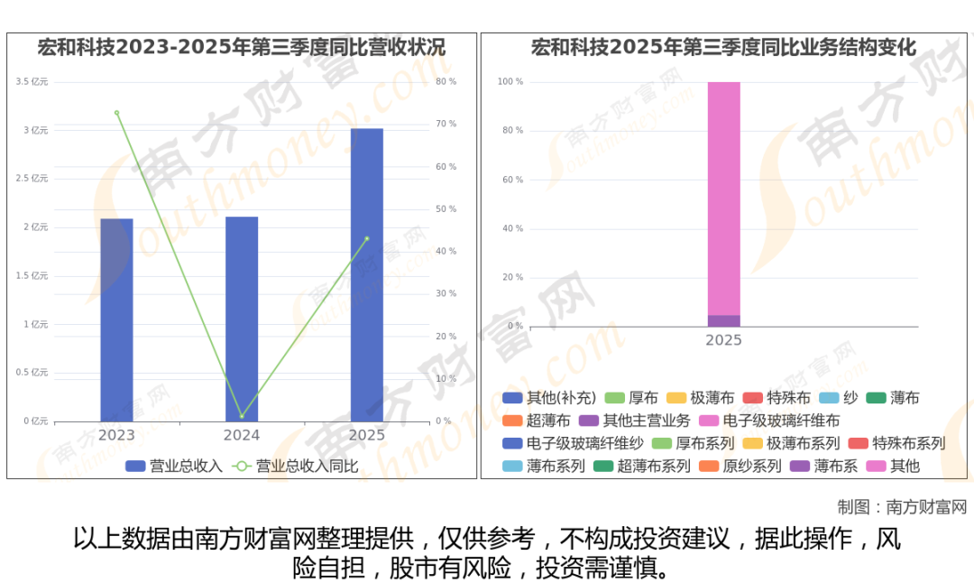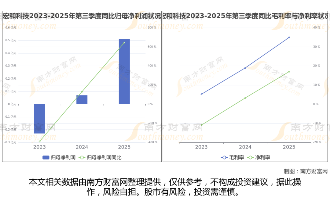 公司2025年第三季度季报显示,宏和科技实现净利润5143.33万,同比增长644.41%;毛利润为1.05亿,毛利率34.92%。