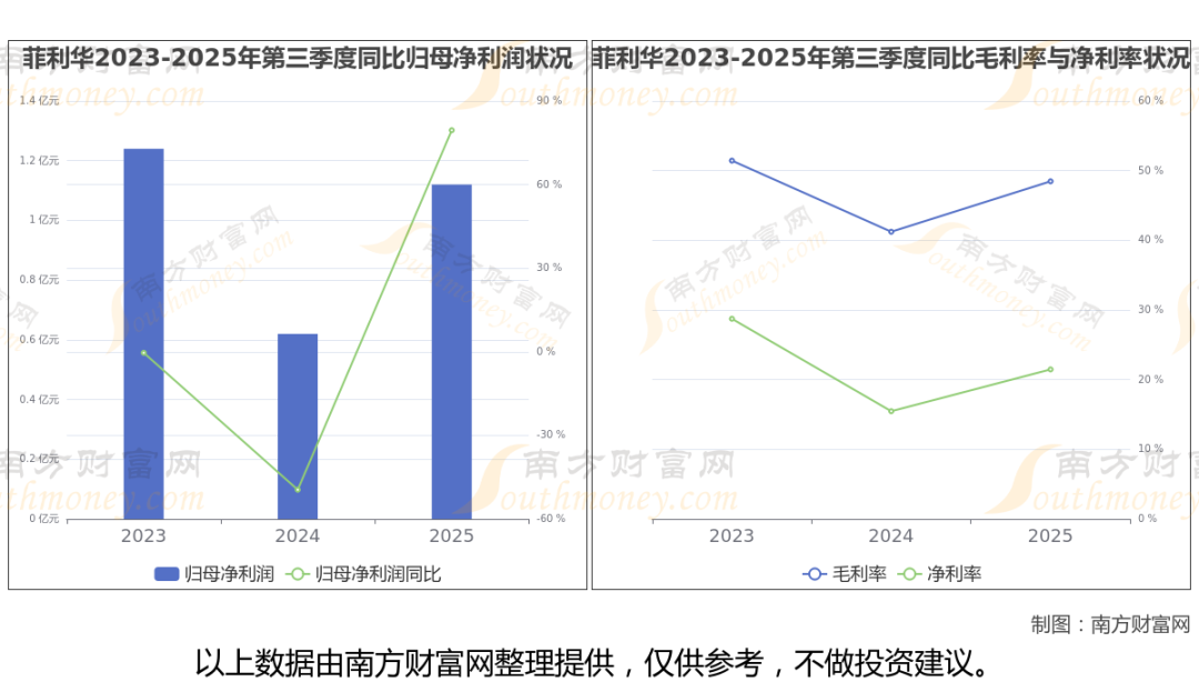 2025年第三季度季报显示,菲利华公司毛利率48.47%,净利率21.47%,归属净利润1.12亿,同比增长79.51%。