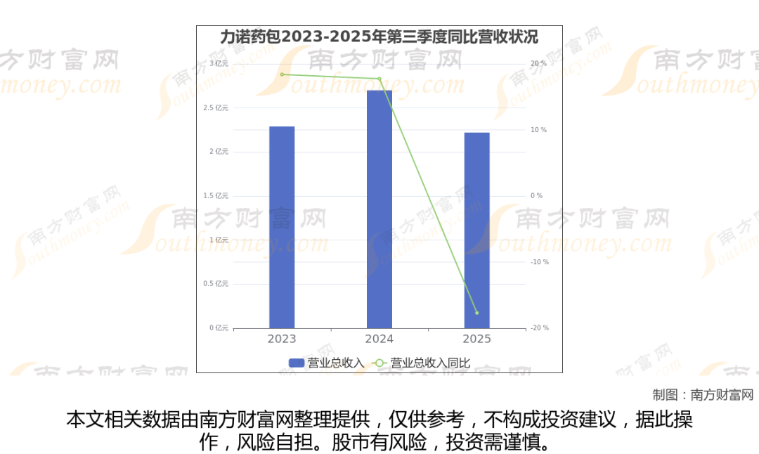 (如上图)力诺药包披露2025年第三季度报告,报告期实现营收2.22亿元,同比-17.69%。