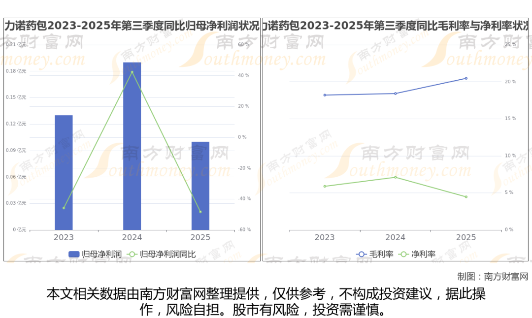 2025年第三季度季报显示,力诺药包公司毛利率20.46%,净利率4.46%,归属净利润991.49万,同比增长-48.32%。