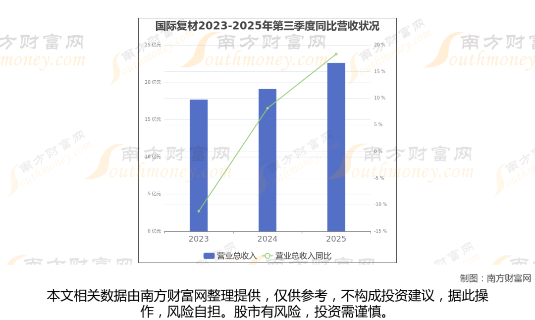 国际复材2025年第三季度报告显示(如上图),公司实现主营业务收入22.6亿元,较去年同期增长18.3%。