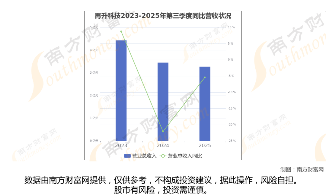 再升科技2025年第三季度报告显示(如上图),公司实现主营业务收入3.27亿元,较去年同期增长-5.38%。