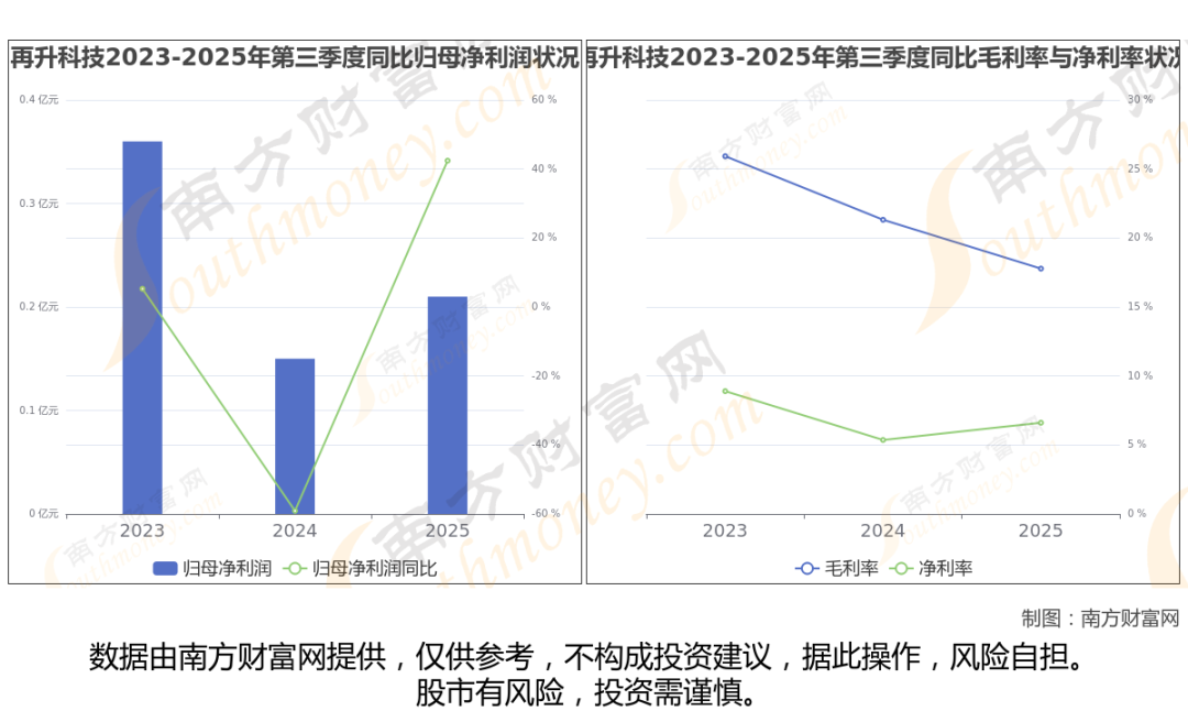2025年第三季度季报显示,再升科技公司实现净利润2096.65万,同比上年增长率为42.42%,毛利率17.78%。