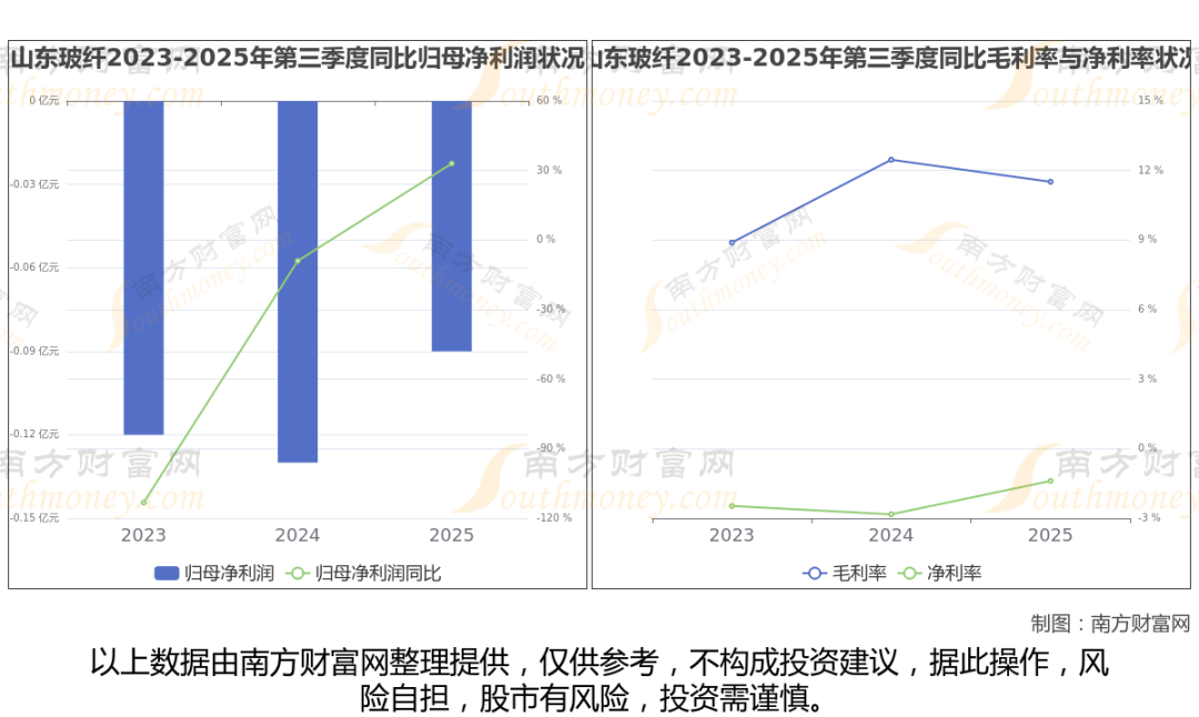 山东玻纤2025年第三季度季报显示,公司实现净利润-894.14万,同比增长32.98%;毛利润为7423.6万,毛利率11.51%。
