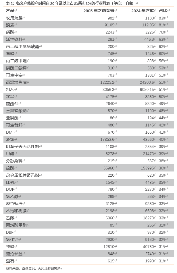 2.1. 化工部分子行业超过20年老旧装置产能统计