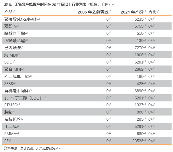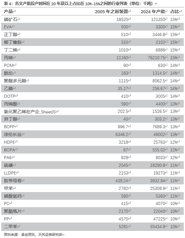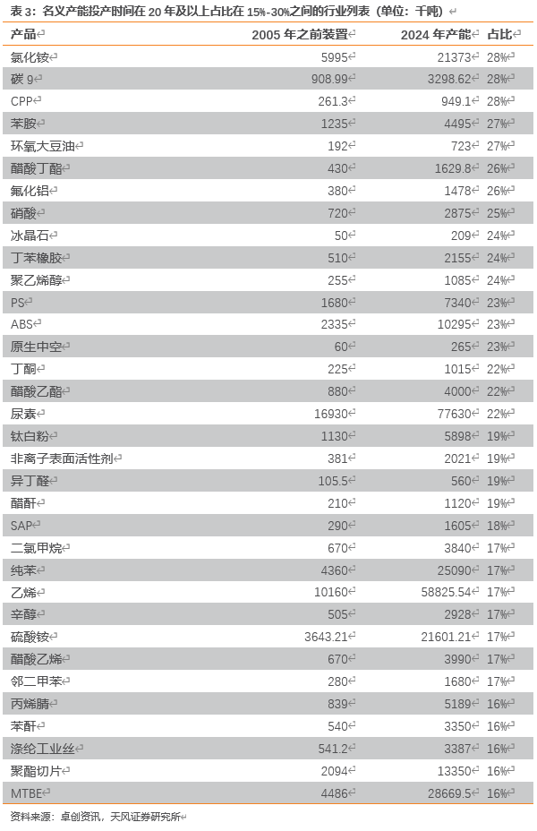 我们统计149个化工子行业现有名义产能投产时间数据,我们认为在“反内卷”的背景下,期待老旧设备更新改造作为新的“成本要素”有更大的发挥空间