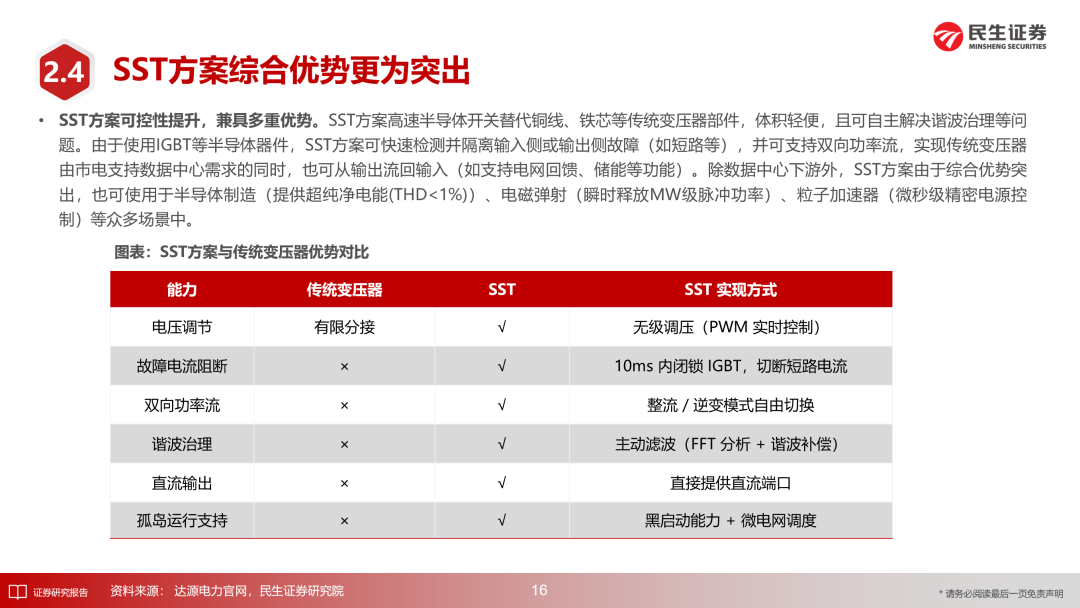 2、电力电子器件:SST通过三级电路拓扑实现电能转换与隔离,具备电力电子相关技术储备的公司有望享受赛道红利。建议关注:AIDC多产品布局&电力电子老牌企业【盛弘股份】、电力电子系列化解决方案供应商【四方股份】、整流&逆变技术布局深厚【科陆电子】等。