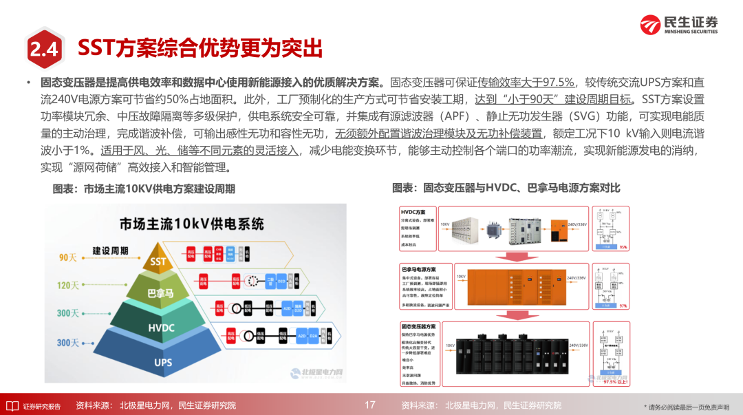 ■ HVDC、巴拿马电源等方案具备一定优势,SST方案综合优势突出。