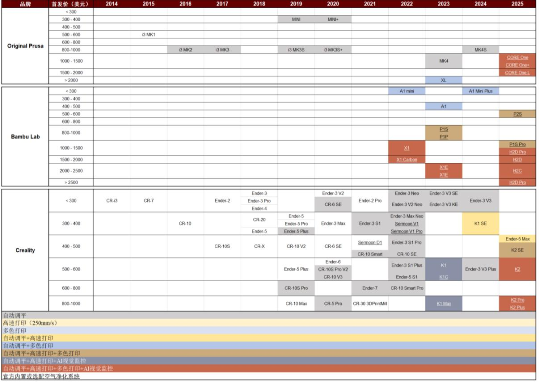 图表5:FDM消费级3D打印机产品迭代图
