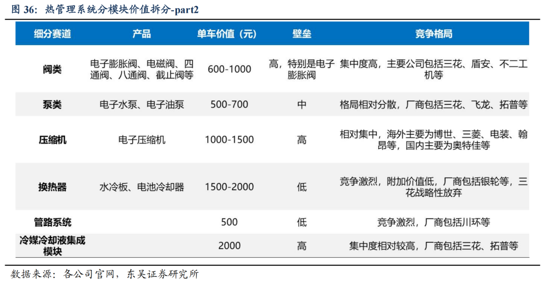 3.2. 热管理价值量:热泵集成模块价值量高,三花聚焦阀&泵&集成模块