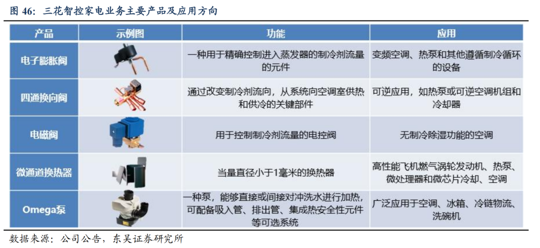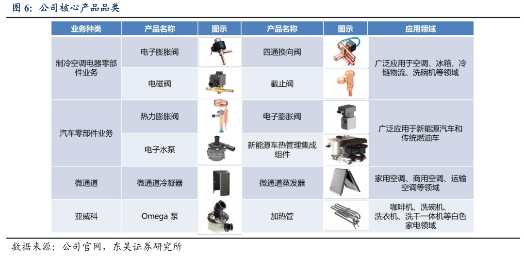 三花产品优势:以阀、泵为核心,延展至系统集成。