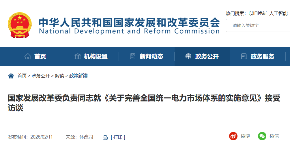 实践证明,全国统一电力市场有效促进了电力资源优化配置,有效平衡了安全保供、绿色转型和价格稳定,为推进新型电力系统建设提供了重要的体制和市场支撑。切实缓解电力保供压力。依托全国统一电力市场的大范围资源调配与灵活调节功能,2025年迎峰度夏期间,跨区通道最大实际送电达到1.51亿千瓦,较2024年历史最高峰值增加900万千瓦,创造了“十四五”迎峰度夏能源电力保供最好成效,电力市场在高峰时段的价格引导与调节激励在其中发挥了重要作用。助力能源绿色低碳转型。2025年,新能源市场化交易电量1.35万亿千瓦时,占新能源发电量的60%;其中,绿电绿证市场折算交易电量9780亿千瓦时,超72%的市场化交易新能源获得了额外环境价值收益。保持用能成本总体稳定。在近年全球能源价格波动明显、新能源消纳成本快速增加的背景下,我国通过完善电价机制、推进市场化交易等措施,保障工商业平均电价在国际上处于较低水平,有效巩固我国制造业的国际竞争力。促进新质生产力发展。全国统一电力市场构建了适应新质生产力发展需要的新型生产关系,一批新模式新业态在市场环境下蓬勃发展。截至2025年底,新型储能装机规模突破1.36亿千瓦,“十四五”以来直接拉动投资超2000亿元;虚拟电厂最大调节能力超1600万千瓦,车网互动聚合资源超1900万千瓦。
