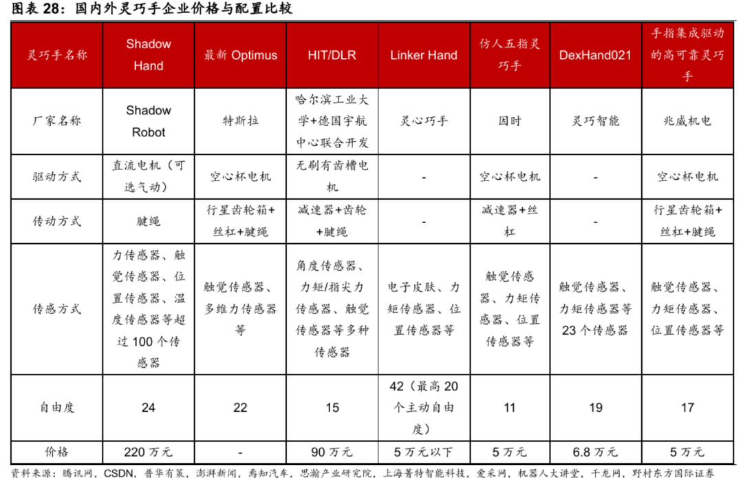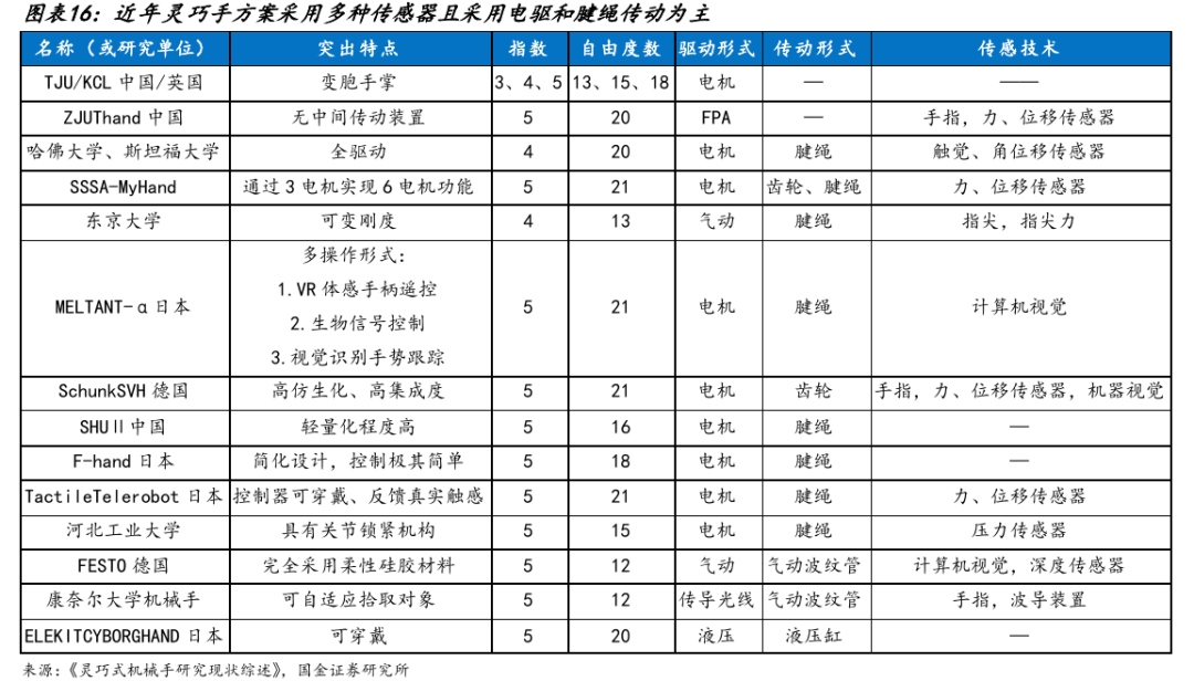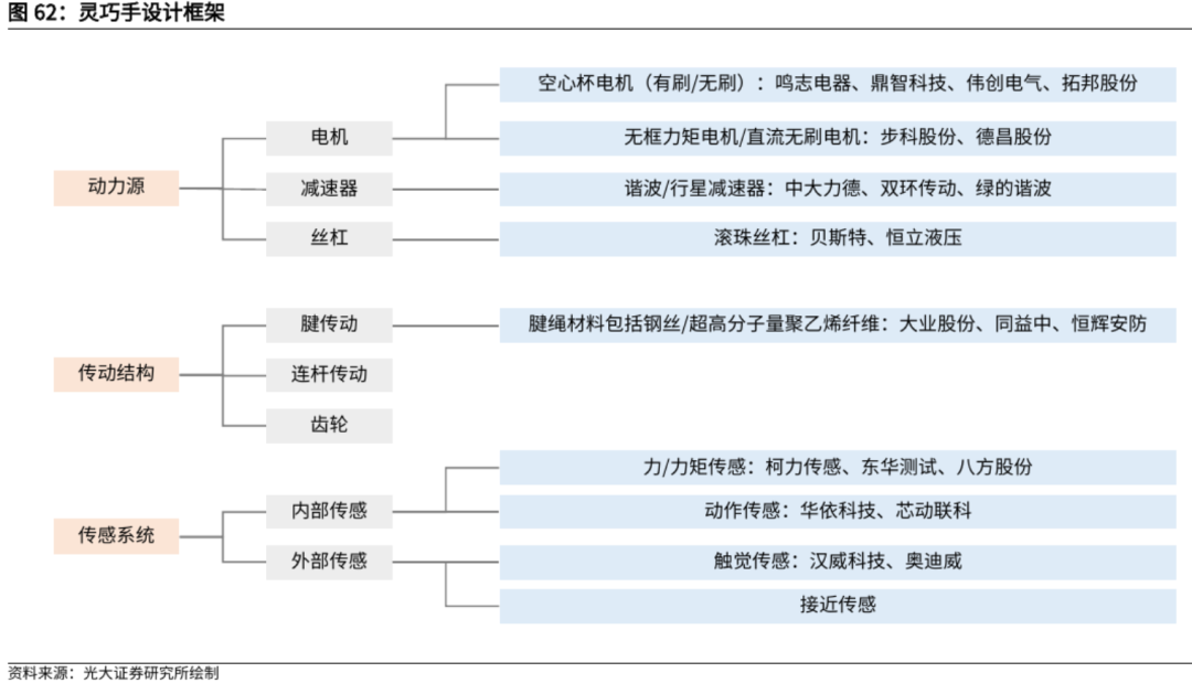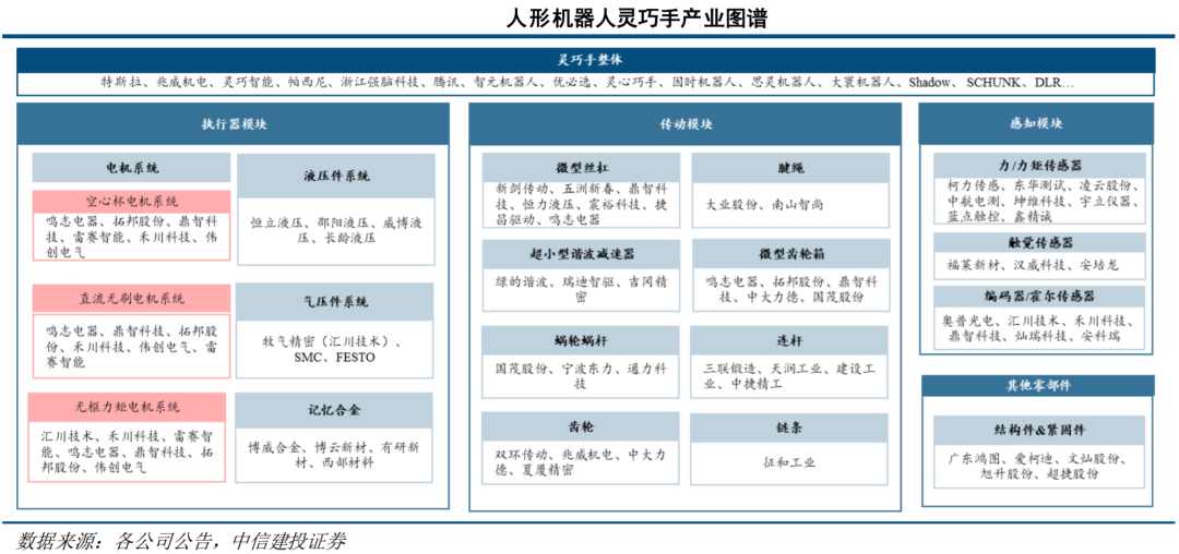 灵巧手涉及环节众多,精选具备产品竞争力和客户资源的公司。
