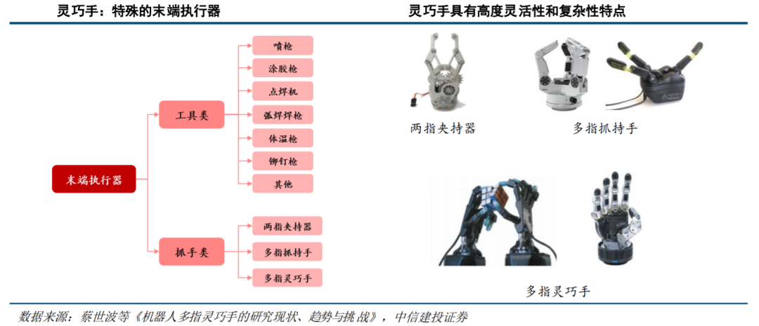 灵巧手是特殊的末端执行器,向智能化、高灵活度发展