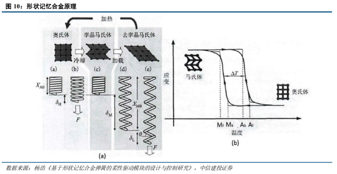 4)形状记忆合金驱动为新型驱动方式,采用特殊合金材料SMA。