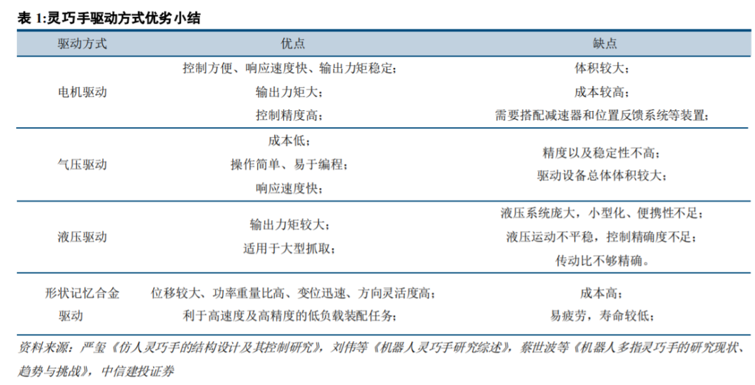 1)电机驱动技术成熟,是灵巧手中应用最为广泛的驱动方式。