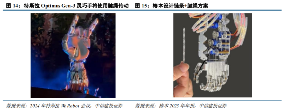 然而腱绳传动也存在部分缺点,包括负载弱、预紧力不稳定且绳索有弹性,干扰控制的精确性。腱绳传动应用较广,代表有特斯拉灵巧手、Utah/MIT手、DLR系列手、Shadow手等。