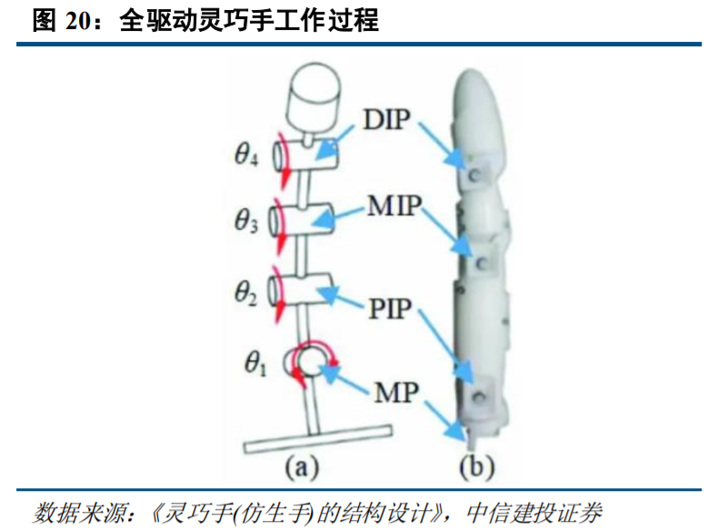 1)全驱动灵巧手驱动源与自由度数量相等。