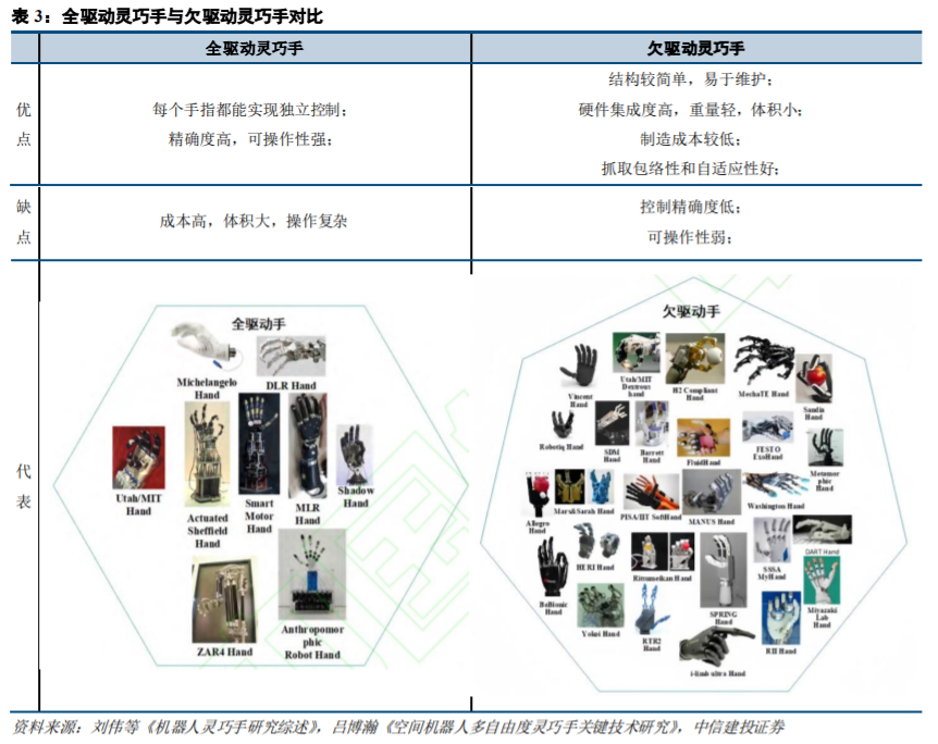 ②从运行特点看,全驱动灵巧手需要配置更多的驱动器,使得灵巧手成本上升、体积变大、操作复杂。