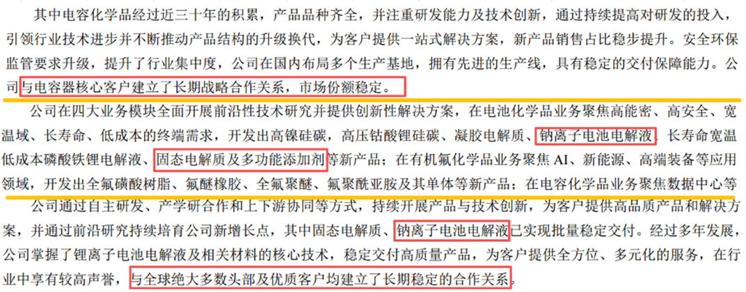 而其电容器化学品(现已归入其电子信息化学品)更是闷声发大财,全球市占率超50%,客户包括村田、TDK、三星电机,用于手机、汽车MLCC(片式叠层陶瓷电容器),订单稳定、账期短、毛利高。这块业务看似传统,却是穿越周期的压舱石。值得一提的是,新宙邦在电解液领域采取绑定 定制策略,与LG新能源签订三年长协,锁定高端份额,避免陷入低端价格战。同时,其钠电池电解液已通过宁德时代验证,2026年有望随钠电储能项目落地实现量产。