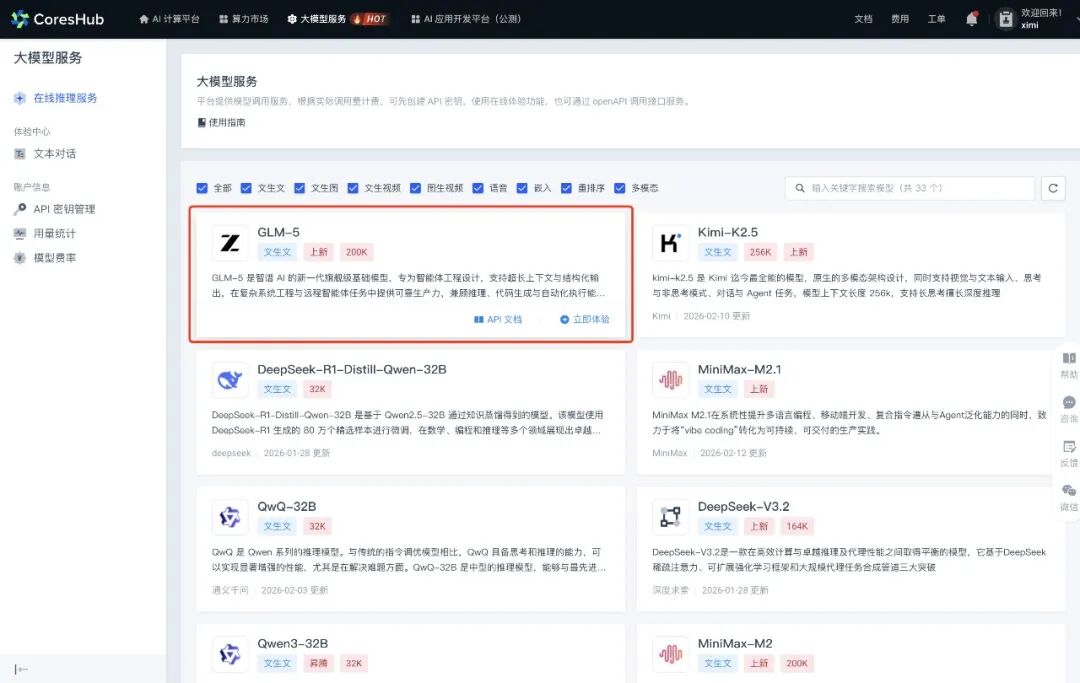 现在登录 CoresHub.cn,进入大模型服务,即可立即体验!