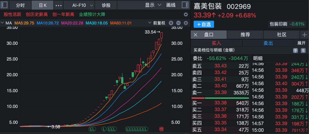 自2025年12月17日至2026年2月12日期间,嘉美包装(002969)股价涨幅达到632.24%,其间多次触及股票交易异常波动情形。在此背景下,嘉美包装于2月12日晚间披露异动公告,强调当前股价已严重脱离公司基本面情况,存在市场情绪过热、非理性炒作风险。