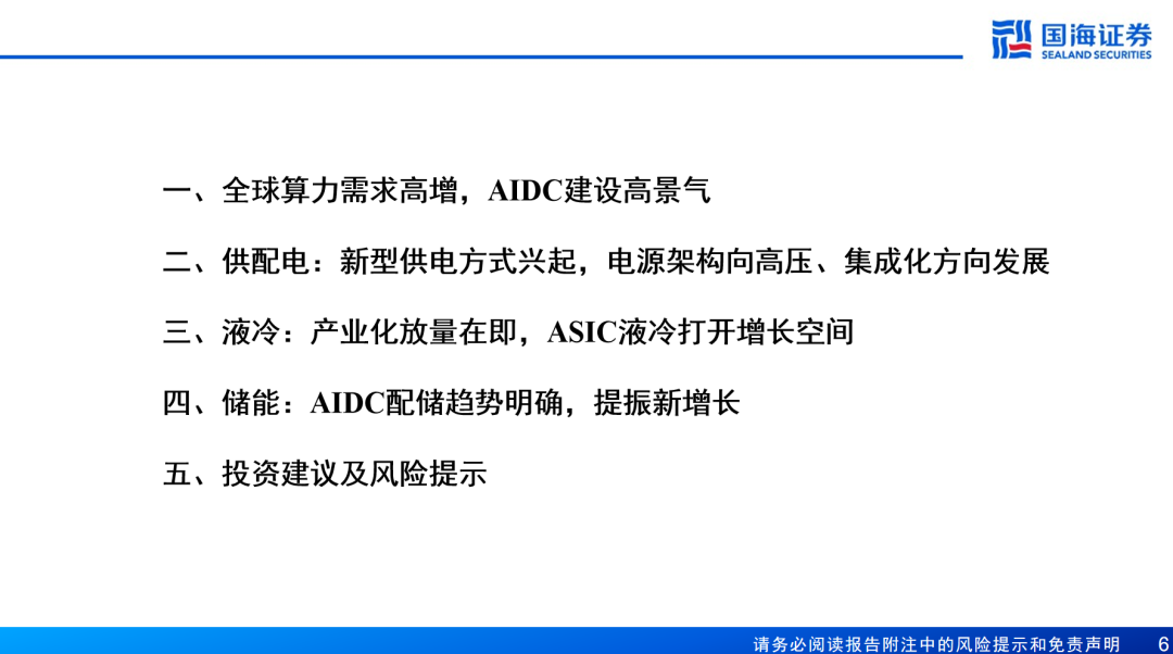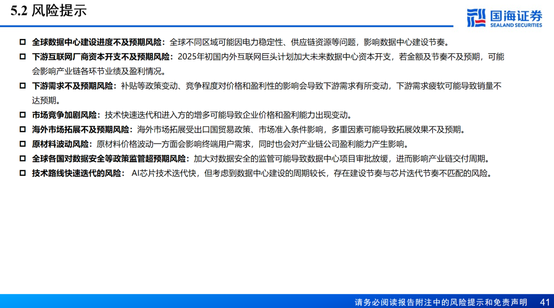 风险提示:全球数据中心建设进度不及预期风险;下游互联网厂商资本开支不及预期风险;下游需求不及预期风险;市场竞争加剧风险;海外市场拓展不及预期风险;原材料波动风险;全球各国对数据安全等政策监管超预期风险;技术路线快速迭代的风险。