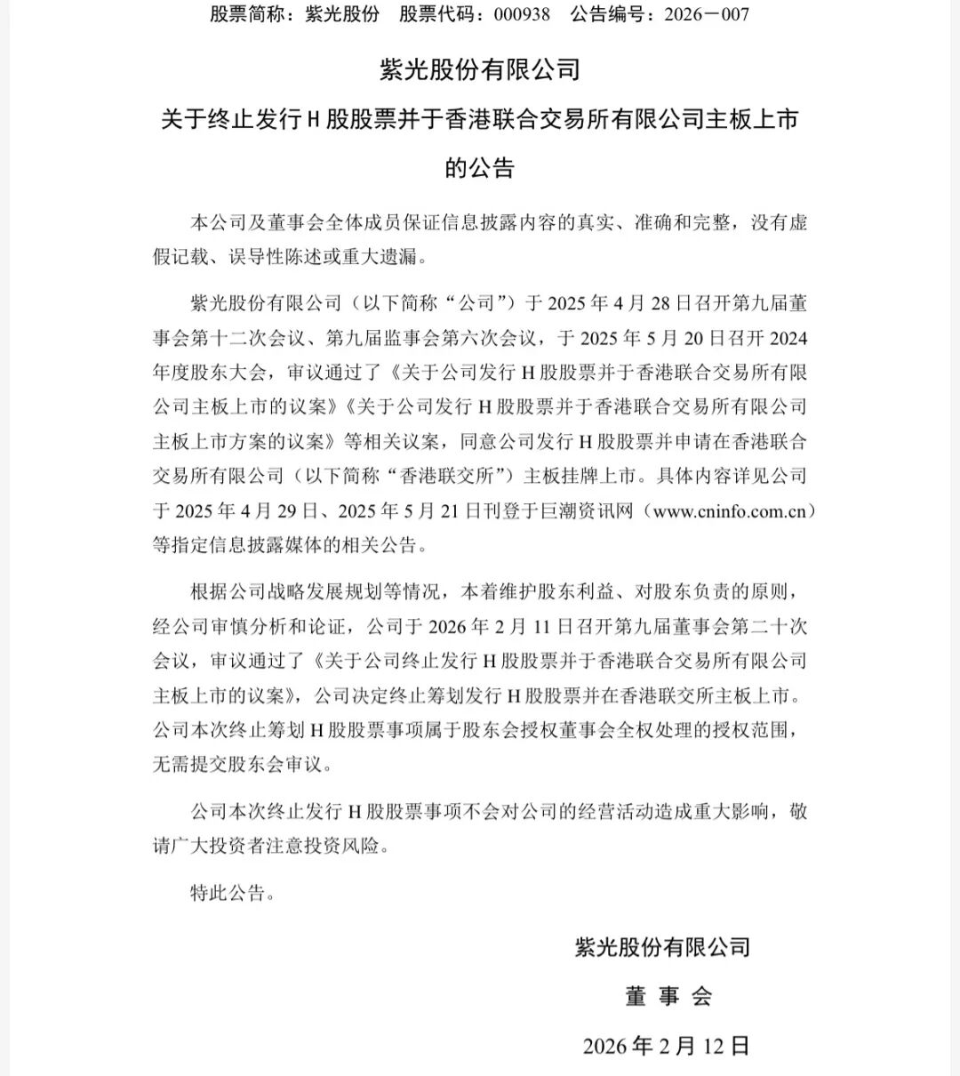 2月11日晚间,紫光股份密集发布13份公告,释放两大资本运作关键信号:公司拟通过向特定对象发行A股股票,募资不超过55.70亿元;同时决定终止H股发行及在港交所主板上市的相关计划。