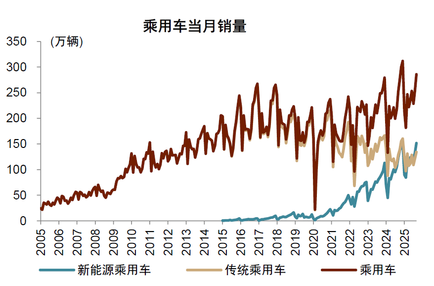 图表5:2020年以来新能源车带动乘用车总销量止跌回升