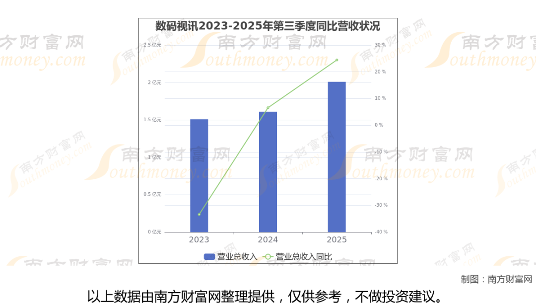于2025年第三季度,数码视讯披露了其业绩表现(如上图),其中主营业务收入2.01亿元,相较于去年同期24.46%。